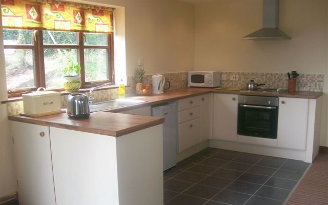The front door opens onto an airy, well-arranged open plan living area with a small, tiled hall area for hanging coats, and storing walking boots… It has a brand new, well-equipped, L-shaped fitted kitchen, an attractive tiled floor and a large window overlooking the side patio, an ideal placed to catch the late afternoon sun!